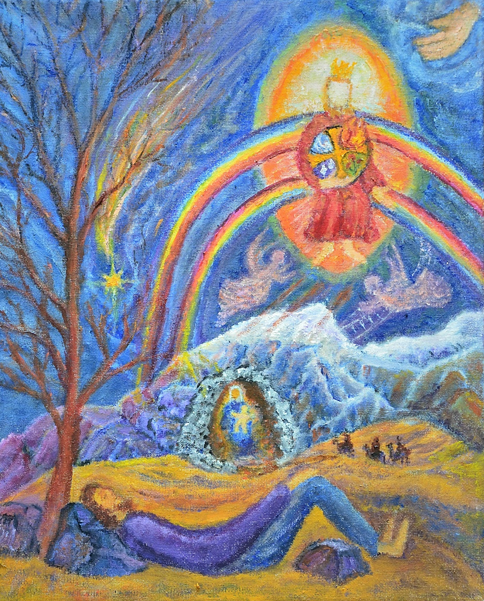 Oil painting by Mother Maria-Thomas for the cover of her book Reveries Under the Fig Tree: Volume I — Reflections for the Advent and Christmas Season
