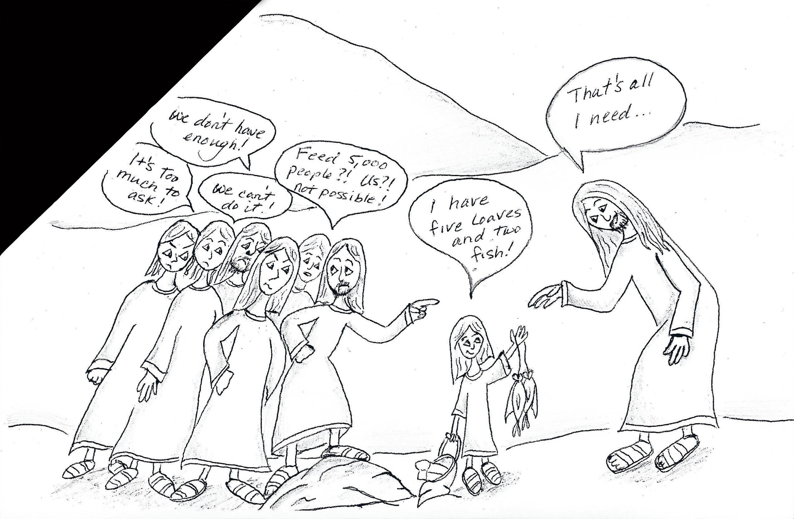 Illustration by one of our Sisters of Christ feeding the 5,000 (John 6:1-13)