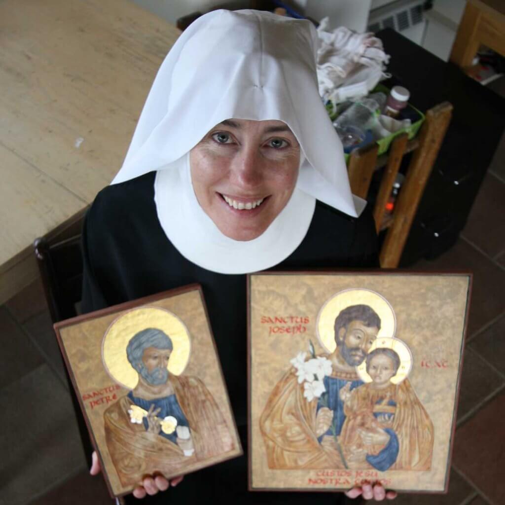 On the first day of mowing hay this season, our tractor got stuck in the mud. Thankfully, due to the generosity of our neighbors, it wasn’t long before it was rescued!Sister Magdalena celebrated her Silver Jubilee (25 years of monastic profession) on May 31, Feast of the Visitation.On the memorial of Our Lady of Fatima, May 13, Sister Kathryn was clothed with the Benedictine habit. She is a native Coloradan, and one of her hobbies is writing icons.Postulant Mary waters the plants in the greenhouse. We are grateful to have another green thumb in the community!Sister Assunta prays in her cell as the sun reflects a unique pattern onto the crucifixSummer 2021 Photos