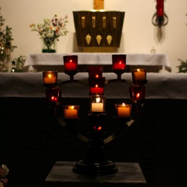 Every year on February 2, the Feast of the Presentation of the Lord, after the blessing of candles and the celebration of the Eucharist, we place our candles in a heart candelabra in front of the altar to burn throughout the day.  It is a tradition that honors the Sacred Heart of Christ, which burns with love for us, and serves as a reminder that our vocation is to return love for Love – that in us, Love Himself may be loved.