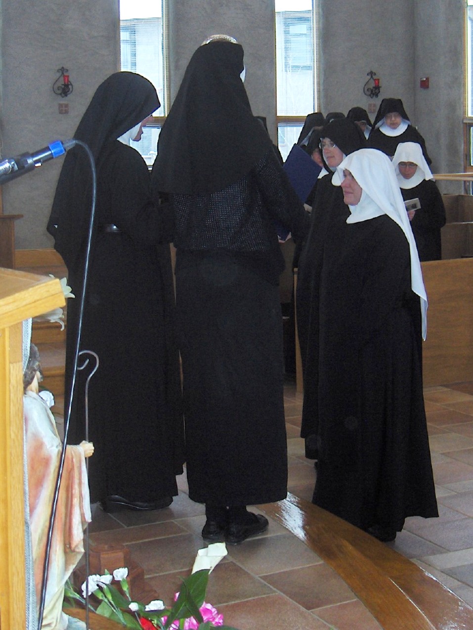 A novice is taken through the valley of Humility. It is rich, beautiful and mortifying. It is a tough place to be but it is the richest. There will be the cliffs of Obedience. There are going to be cliff-hangers but those are ones that will climb to the heights. There are the silent streams that flow strong and to drink one must be silent. We take times of silence to drink deeply of Christ. That relationship is the only thing that ties us strongly to the monastic life. Know the voice of the Good Shepherd. Know it well. You must be able to discern the voice of the Good Shepherd because so often when we pray and ask God to speak to us, He speaks through our superiors. We have to be able to recognize His voice speaking to us through our Abbess.
